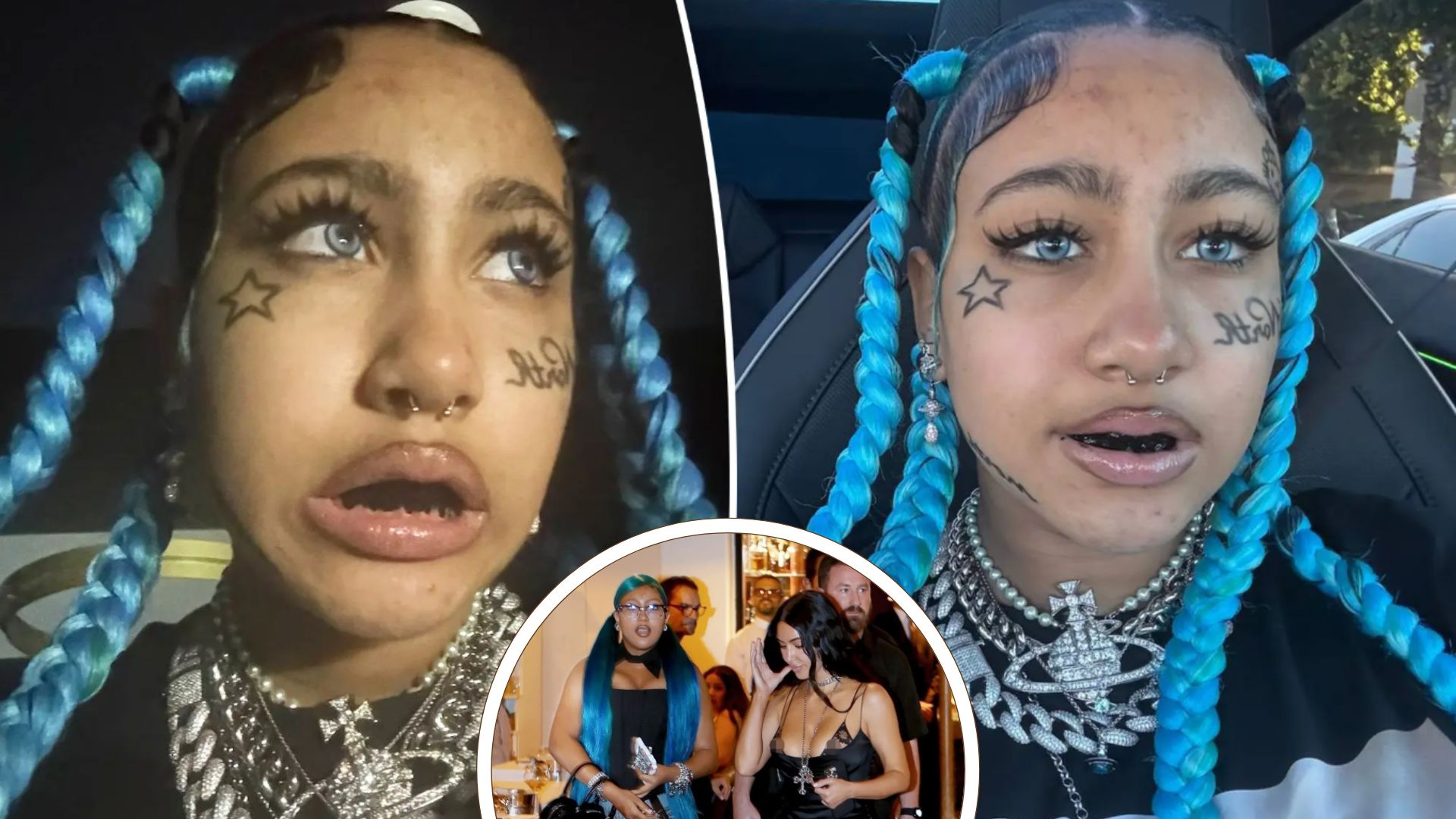 hirdetésNorth West még csak 12 éves, de máris róla beszél mindenki a tengerentúlon. Kim Kardashian és Kanye West kamasz lánya nemrég igen extrém megjelenéssel hívta fel magára a figyelmet a közösségi médiában, aminek láttán sokan elgondolkoztak szülei nevelési elvein. North ugyanis kék és fekete tincsekkel hódít – külsejét kék kontaktlencsével, műszempillával, fake tetoválásokkal és műpiercingekkel tette még különlegesebbé.