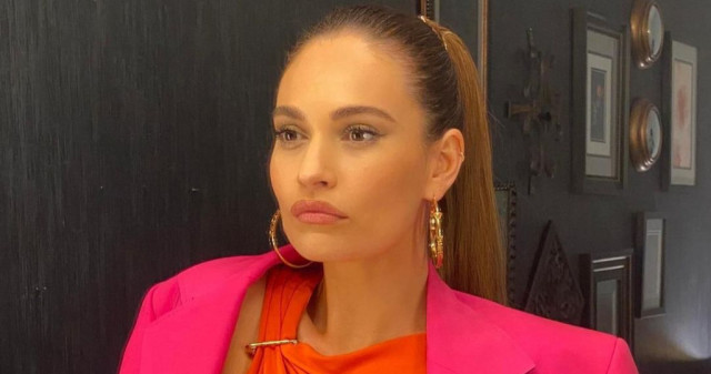 A 36 éves színésznő egy testhezálló, garbónyakú ruhát viselt, amelyet különböző szélességű fekete-fehér csíkok borítottak a nyaktól egészen a térd alá. A hosszú ujjú darab középen hasítékkal készült, a vízszintes csíkozás pedig karakteres, strukturált hatást kölcsönzött az alakjának.