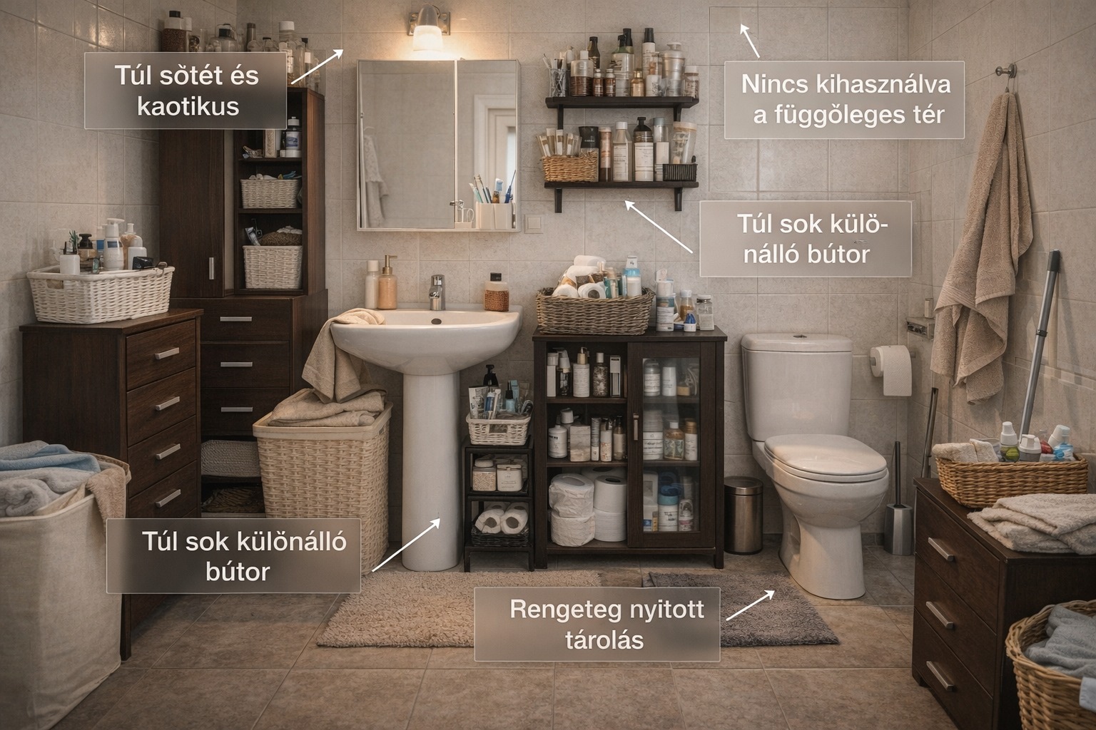 Kis fürdőszoba berendezése mindig kihívás. Kevés hely, sok tárgy, és valahogy mindent el kell férni úgy, hogy ne nézzen ki zsúfoltnak. Aztán megtörtént: vettél egy szekrényt, aztán egy másikat, egy polcot, egy komódot. És most még szűkebb, káoszabb és kevésbé működőképes, mint volt.