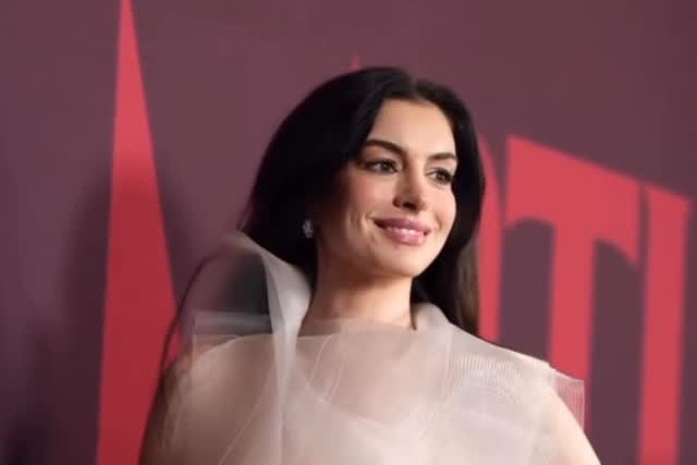 Csodaszép vízesésszerű ruhában tündökölt Anne Hathaway New Yorkban