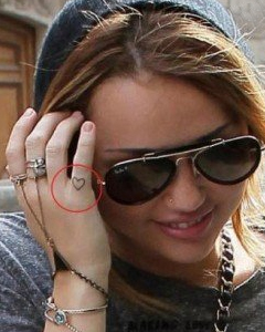 Cyrus kisasszonynak nem ez az első tetoválása, például a jobb fülén van egy Love-felirat, a bal melle alatt a Just Breathe, míg jobb kisujján egy szívecske.