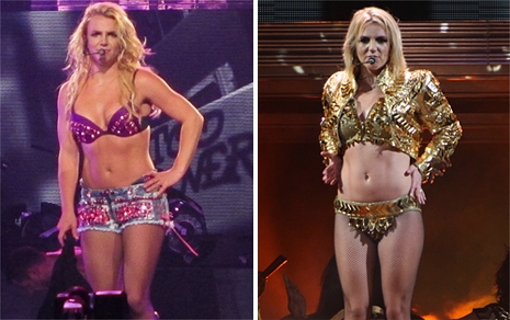 Britney Spears örökös súlyingadozását nehéz figyelemmel kísérni. Az énekesnő a két szülés után alaposan meghízott, majd kemény edzés mellett megszabadult a felesleges kilóktól. 2009 elején újra megjelentek nála a zsírpárnák, de úgy tűnik, őt különösebben nem zavarja mindez, hiszen turnéján is olyan ruhákat visel, amelyek nem takarnak sokat.