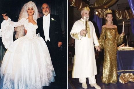 A Titanic főcímdalának énekesnője, Céline Dion 1980-ban ismerkedett össze a menedzserével, René Angélillel, aki huszonhat évvel idősebb az énekesnőnél. Céline ekkor még csak tizenkét éves volt, majd tizennégy évvel később, 1994. december 17-én, Kanadában házasodtak össze – először. Céline óriási tiarát viselt, amely hét kilót nyomott a 2000 db kristálynak köszönhetően, a ruhájának uszálya pedig három méter hosszú volt. A menyasszonyi ruha és a fejdísz összességében körülbelül 1000 órán át készült. Ha mindez nem lenne elég, a pár megújította a fogadalmát 2000. január 5-én a Las Vegasban található Caesars Palace-ban egy arab kultúra témájú rendezvény keretein belül. Ez alkalommal az énekesnő egy Alexander McQueen által tervezett aranyszínű ruhát választott magának. A szórakoztatásról hastáncosok és kígyóbűvölők gondoskodtak. Az énekesnő és a menedzser azóta is egy párt alkot, és három közös gyermekük van.