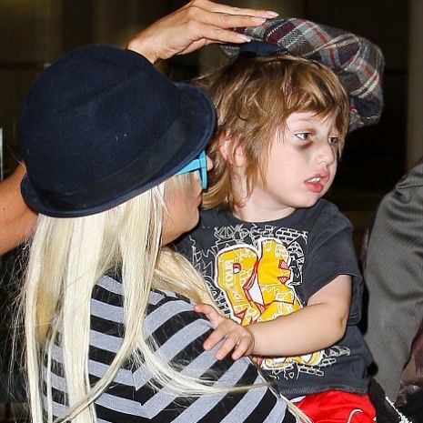Az énekesnőt még a tegnapi napon kapták lencsevégre a lesifotósok a Los Angeles-i LAX repülőtéren, amint éppen fiát cipelte, akinek szeme körül jól látható volt egy nagy monokli.