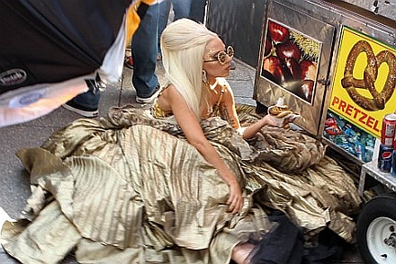 A Lady épp hotdogot evett, amikor az incidens történt, ugyanis elbukott a saját lábában. Természetesen a lesifotósok tudták a dolgukat, így a legjobb pillanatokat megörökítették. Gaga egy McQueen-cipőt viselt, mely igazán nem keltett nagy feltűnést az énekesnő korábbi lábbelijeihez képest.