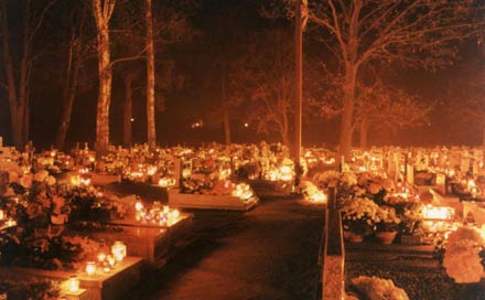 Nálunk november elseje és másodika a halottakról való megemlékezés napja. Az ünnep előestéjén a szentbeszéd közben megkondulnak a harangok, a hozzátartozók a kegyelet virágait tűzik az elhunytak sírjára. Másnap, halottak napján van az ünnepélyes szentmise. Mindenszentek napján a holtak lelki üdvéért gyertyát gyújtanak a sírokon.