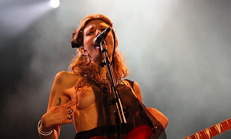 Először „Courtney, be my...” feliratú pólójától szabadult meg, majd fekete melltartóját is könnyedén elhajította. A fanok őrületes rivalgással fogadták az énekesnő „produkcióját”, melyből látszódik, hogy Love még közel az ötödik X-hez is magabiztos.