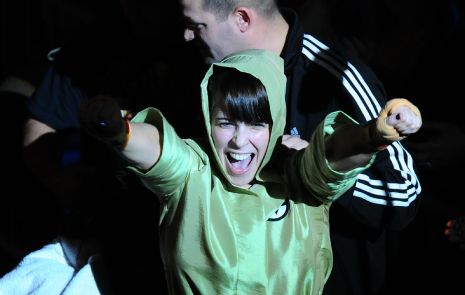 Utolsóként a legedzettebb páros került a ringbe: VV Sáskaharcos Csaba és VV Sittes Gergő. Tőlük várták a legizgalmasabb mérkőzést és a fiúk tettek is arról, hogy az elvárásoknak megfeleljenek Az első menet parádés volt, vércseppek is megjelentek a ringben. Gergőnek felduzzadt a szeme, az orra mindkettejüknek vérzett és repültek a fogvédők. Erdei élvezte a meccset, ökölbe szorult kézzel izgult és azt mondta, az állás rendkívül szoros. Gergő arcát a harmadik menetre már elöntötte a vér. A kommentátorok nem értettek egyet a végeredményben, a pontozás 2:1 arányban Gergő javára döntött.