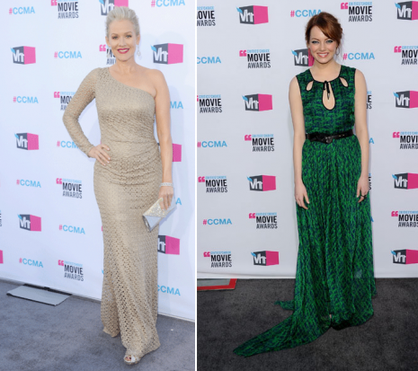 Penelope Ann Miller egy pezsgő színű, aszimmetrikus pántú estélyit választott. A ruha nem a legjobb, ugyanis túlságosan szürke összhatást kelt világos bőrével és ősz hajával együtt. Emma Stone mélyzöld, Jason Wu-ruhában tündökölt az este folyamán. A zöld szín nagyon jól illett vörös hajához, és a színésznő is nagyon csinos volt ruhájában.