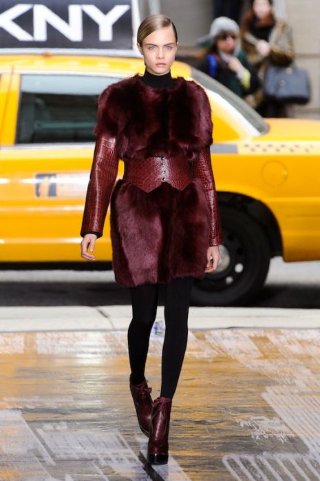 A tervező az előző szezonban sportosabb ruhákkal és feltűnőbb mintákkal próbálkozott, őszre viszont visszatért gyökereihez, és egy jóval egyszerűbb, letisztultabb kollekcióval kápráztatta el a nagyérdeműt. Bőrkabátjaiban, kötött pulóvereiben, bundáiban olyan modellek vonultak végig a Pier 94-ben, mint Gisele Bündchen, Anja Rubik, Abbey Lee vagy Frida Gustavsson.