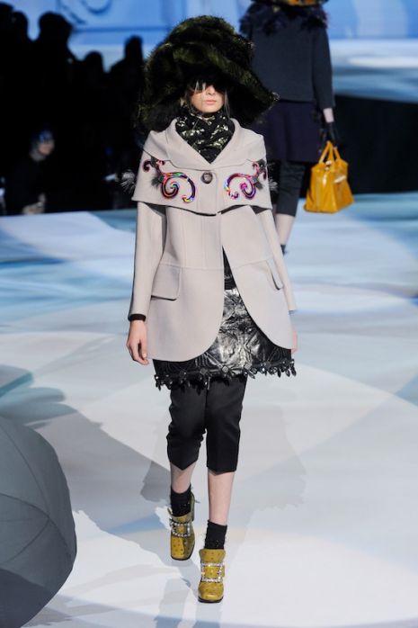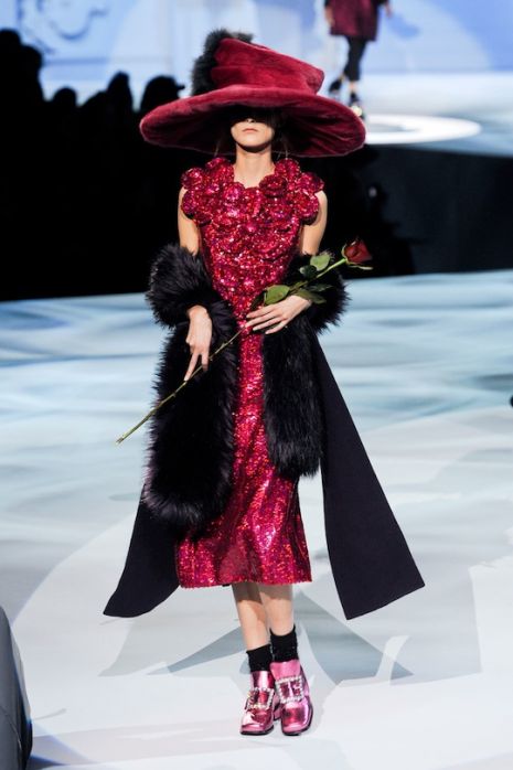 Marc Jacobs alig egy héttel kollekciójának bemutatása előtt változtatott a show díszletén, mely végül egy melankólikus téli tájra emlékeztette az est résztvevőit. A kivitelezésben Rachel Feinstein volt segítségére, aki papírból készített düledező romokat és barlangokat. A kifutón felvonult modellek Mary Poppinst idézték (Marc az Alice in Wonderlandből, a Mary Poppinsból és a Dr. Seussból merített ihletet): óriási, szőrös kalapok; térdnél redőzött háromnegyedes nadrágok; hatalmas méretű kabátok és sálak; szőrmék. A Paisley-minta mellett fekete és rózsaszín csillogó anyagokat is felhasznált a siker érdekében, de a megítélésen ezeknek sem sikerült maradéktalanul változtatni: a szakma csak nevetett a mogul munkáin, és furcsának titulálták alkotásait.