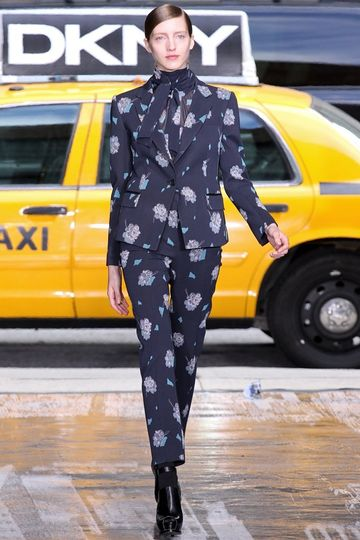 A DKNY-divatház szintén a New York-i tervezőnő büszkesége. Donna második divatházának legújabb darabjai nagyrészt feketék, amiket leopárdmintával, bőrövekkel, álló gallérokkal kombinált. A gyász színe mellett feltűnt a kifutón egy-egy virágmintás kosztüm; kék és halvány rózsaszín ruhák, valamint egy bordó bunda is, mely drámaivá emelte a sárga taxis díszlettel rendelkező show színvonalát.