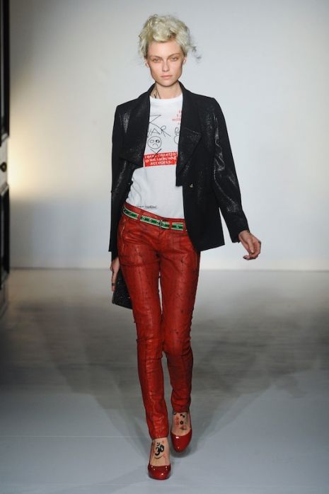 Robyn Coles meztelen fejfedős show-ja után a feltűnő hajkoronájáról is ismert Vivienne Westwoodnak – aki mindig is a radikális extravagancia híve volt – idén is sikerült maradandót alkotnia. A tervezőnő modelljei kócos hajjal és érdekes motívumokkal „tetoválva” voultak végig a kifutón olyan ruhákban, amelyek abszolút hordhatóak, mégis nagyon angolosak. A kollekcióban keveredik a lázadó, a hippi és a nőies stílus, amit húzott anyagok, harisnyák, minták és kalapok is hangsúlyoznak.