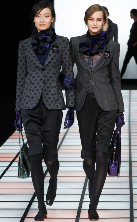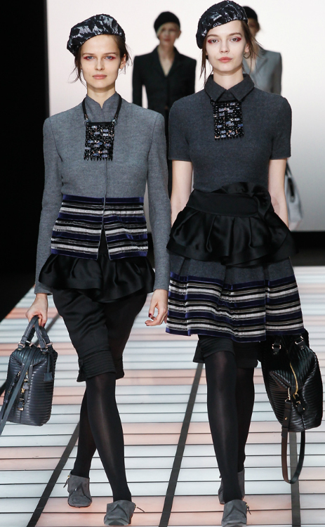 Az Emporio-irányvonal modelljei szinte a show egésze alatt párosával, kézen fogva vonultak végig a kifutón. A kollekció legfontosabb ruhadarabja egyértelműen a bermudanadrág – akár felsőrésszel, akár más darabok alatt, de viselése egész szezonban kötelező lesz az igazi Armani-nők számára. A tervezőnek fontos a nőiesség, így új darabjaiban igyekezett eme vonásokat kihangsúlyozni, némi játékos fodorral, hosszú nyakláncokkal és gyönyörű hajcsatokkal kiegészítve.