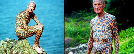 Korábban ő tartotta a világ legtetováltabb emberének a címét a Guinness Rekordok könyvében. A most 73 éves úr korábban el akart menekülni a társadalom elől, így 5500 angol fontot költött az őt befedő leopárdpöttyökre. A Skye szigeten élt egy kis kabinban elbújva, heti egyszer kenuval vitték el neki a szükségleteit és a nyugdíját, 2008-ban viszont egy kis házba költözött.