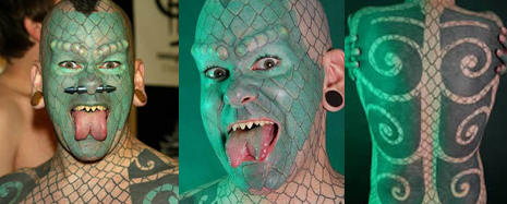 1972-ben született Eric, ismertebb nevén a gyíkember, aki közel 700 órát töltött tetoválással. 5-5 teflonszarvat tetetett a bőre alá, a szemöldöke helyére, megreszeltette a fogait, kettévágatta a nyelvét, illetve két fültágítóval alakíttatta át magát. Egyébként egy előadóművészről van szó, aki annak szenteli életét, hogy szórakoztasson másokat.