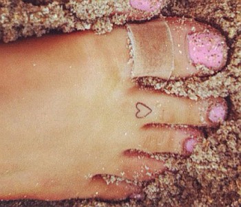 A Nickelodeonon futó Victorious című sorozat 19 éves színésznője, Ariana Grande megcsináltatta élete első tetoválását, ami egy apró szívecskét ábrázol, és a lábujjára varratta.
