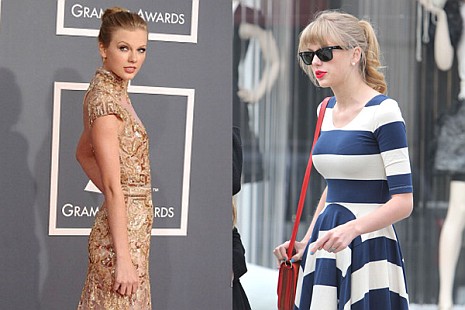Taylor Swift 2012 februárjában (balra) és áprilisában (jobbra)