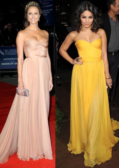 George Clooney barátnője, Stacy Keibler és Vanessa Hudgens ugyanabban a fazonú Maria Lucia Hohan estélyiben jelent meg. Míg Stacy egy testszínű darabot választott, Vanessa citromsárga estélyiben pózolt legújabb filmjének premierjén.