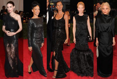 Az estén a klasszikus feketéből sem volt hiány, hiszen Rooney Mara, Rihanna, Gisele Bündchen, Cate Blanchett és Mary-Kate Olsen is az örök divatszínt választotta. Rooney és a szupermodell egy-egy Givenchyt, a barbadosi dalospacsirta egy kígyóbőr hatású Tom Ford-ruhát, Cate egy Alexander McQueen-estélyit, Mary-Kate pedig egy Christian Louboutin-költeményt viselt, ám a kritikusok szerint az utóbbinak igencsak esetlenül állt a fekete nagyestélyi, ráadásul sokak szerint önmaga édesanyja is lehetne.