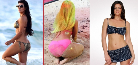 A hátsófél környéki problémák kezelésére a legjobb módszer, ha minél többet eltakarsz belőle. Semmiképp se próbálkozz a tangafazonnal vagy az oldalt megkötős darabokkal. Felejtsd el a nagy mintás és világos darabokat is. Válassz sötét alsót és világos fesőt, így inkább a feslőtestedre irányul majd a figyelem. Viselj hagyományos fazonú bugyit, de a legjobb, ha nagy fodrosat választasz, ami diszkréten elrejt mindent. Megpróbálkozhatsz az úgynevezett úszószoknyával is, ami szintén elfedi kényes testrészed.