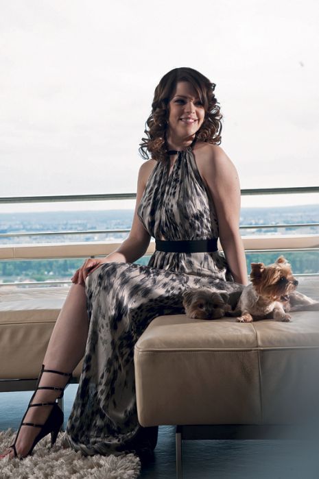 Enikő profi modellként viselkedett a kamerák előtt, egyáltalán nem jött zavarba, s a leopárdmintás ruha ellenére egy kis gyermeteg bujaságot is csempészett a képekbe.