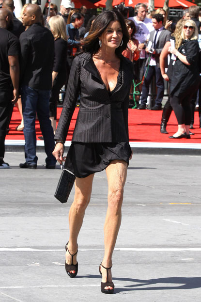Az 57 éves Janice Dickinson egyáltalán nem a korának megfelelően vonult fel a vörös szőnyegen. Ráncos lábait úgy mutogatta, mintha még mindig húszéves lenne.