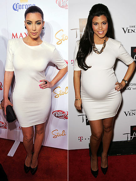 Testvérpárbaj! Kim és Kourtney ugyanazt a H&M-ruhát viselték pár hónapja. A fiatalabb Kardashian lány retro fülbevalóval és felkötött hajjal pózolt, míg az állapotos Kourtney pár visszafogott kiegészítőt viselt.