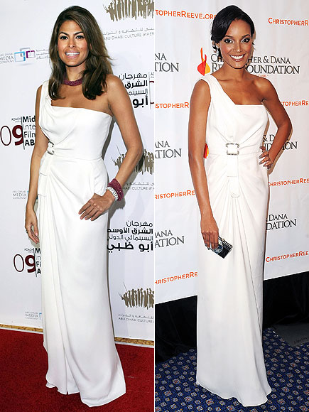Választani sem tudunk! A gyönyörű Eva Mendes és a modell Selita Ebanks lehengerlően festenek ebben a hófehér J Mendel-estélyiben. Ti tudnátok dönteni?