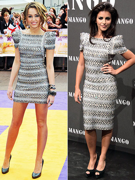 Miley Cyrus és Monica Cruz egy kollekcióból származó Hervé Léger-darabban pózoltak. A ruhák alig különböznek egymástól, ám a kettő összeállítás között a fazon dönt. Miley ruhája miniben sokkal jobban mutat, mint a szolidabb hosszúságú és ormótlanabb ruha a spanyol színésznőn.
