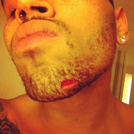 A források szerint a dulakodásban öt ember sérült meg könnyebben, sőt maga Chris sem úszta meg épen, mivel nemrég a Twitter-profilján közétett egy képet, amin a megsebesült állát mutatja. A képet nem sokkal a posztolás után eltávolította, de a szemfüleseknek sikerült lementeniük, sőt néhányan még azt is tudni vélik, hogy a szupersztár a kórházat is megjárta.