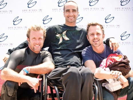 Scott Caan, Jesse Billauer, a The Life Rolls On alapítója és Giovanni Ribisi a They Will Surf Again eseményen