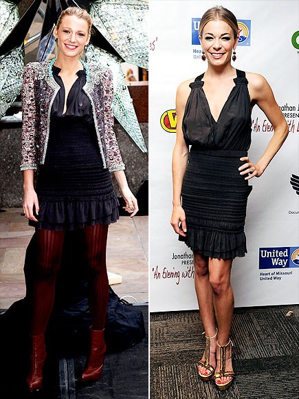 A Gossip girl-lány piros csizmával, harisnyával és túldíszített Chanel-kabátkával viselte ezt az Isabel Marant-ruhát. A countryénekesnő, LeAnn sem vitte túlzásba: valahogy rajta sem igazi a ruha, ám ezt a kört most ő nyerte. Blake ritkán tud hibázni, ám ezt a szettet nagyon elnézte.