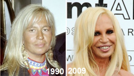 Donatella Versace a tipikus példája a plasztikafüggőségnek. A divattervező 21 évvel ezelőtt kezdte a plasztikáztatást, és bár egykoron sem volt az a tipikus szépség, karakteres arca sokkal jobban nézett ki, mint a mostani, inkább karikatúrára hajazó ábrázata. Az egész egy orrműtéttel kezdődött, majd jöttek az arcfelvarrások, mellplasztikák, később újabb orrműtétek, zsírleszívások, ajakfeltöltések, ránctalanító injekciók. Mára már ott tartunk, hogy alig lehet olyan terültet találni az 55 éves Donatellán, amit ne szabatott volna át.