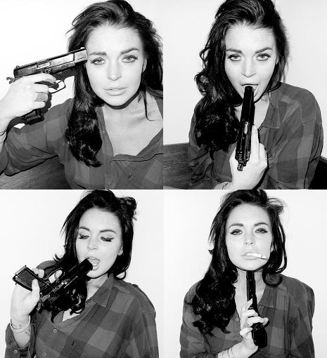 A fotós, Terry Richardson publikálta a képeket, amiken Lindsay egy pisztollyal pózol.