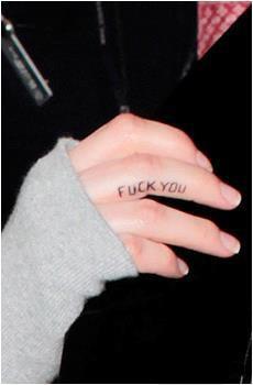 De ez még nem minden. Egy harmadik tetoválás is felbukkant Avril kezén, amikor ép hazafelé tartott. Az egyik ujján egy Fuck You-felirat díszeleg, de előfordulhat, hogy ezt csak tollal írta rá, mert erre is volt már példa, de a testén már szerepel egy FUCK-felirat, így egyáltalán nem lepődnénk meg rajta, ha igazi lenne.