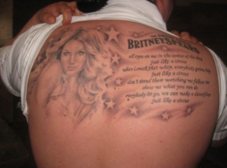 Biritney Spears egyik fanja is egy elég érdekes módot választott kedvence iránti imádatának kimutatására: szinte egy egész hátat beterítő tetoválással akarta megmutatni, hogy mekkora rajongója a pophercegnőnek.