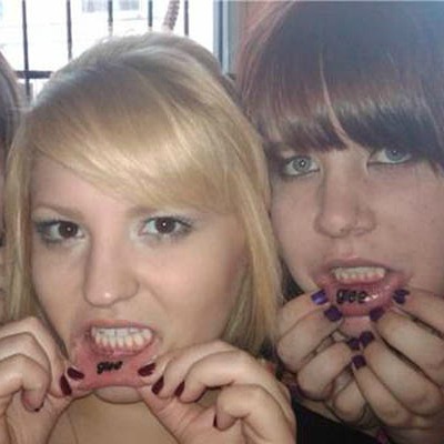 Két barátnő ugyanúgy szerette volna kifejezni a rajongását kedvenc sorozatuk iránt: Glee-feliratos szájtetkót csináltattak. A Ke$ha által divatba hozott szájtetoválás egyik legnagyobb előnye, hogy észrevehetetlen és viszonylag hamar elkopik, de azért mégis meg kellett volna gondolni a feliratot.