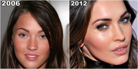 Megan Fox az egyik olyan csillag Hollywoodban, akiről sok pletyka kering a beavatkozásait illetően. Állítólag kapott mellimplantátumokat, nem egy botoxkezelésen vett részt, és zsírleszívásról is beszéltek már. Összehasonlítva a képet, van is különbség, mégpedig az egyik legszembetűnőbb az orra. Állítólag az ajkát is feltöltette, bár régen is telt ajkai voltak, most azért némileg vastagabbnak látszik.