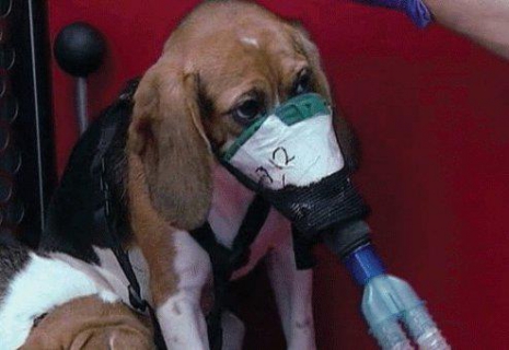 cigaretta teszt egy beagle kutyán – azt vizsgálják, mennyire lehet ártalmas a belélegzett füst