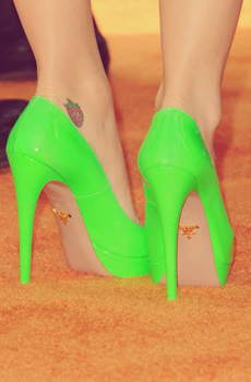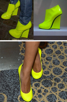 A külföldi sztárok körében gyakoriak a neonszínű lábbelik, legutóbb például a Glee sztárja, Naya Rivera viselt egy neonsárga Giuseppe Zanotti-cipellőt a Comic-Conon. Nem sokkal korábban Nicole Scherzinger is egy hasonló cipőt választott tökéletes, utcai szettjéhez. Ez is bizonyítja, hogy akár fontos, vörös szőnyeges eseményről, akár vásárlásról vagy sétáról van szó, ezek az árnyalatok képesek feldobni egy-egy hétköznapi összeállítást is.
