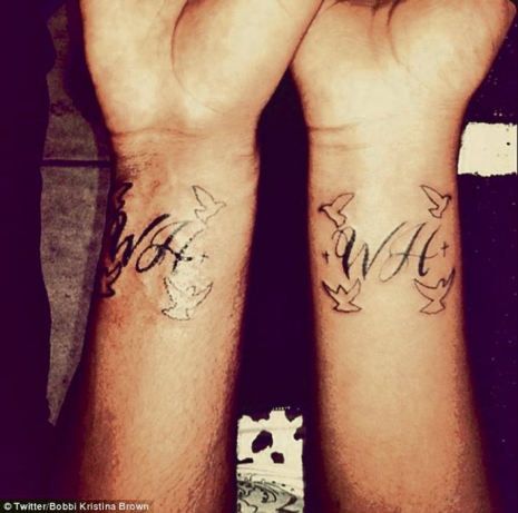A 19 éves lány és fogadott testvére magukra tetováltatták a legendás énekesnő monogramját. A varrat elkészülte után Bobbi Kristina feltöltötte a róla készült fotót Twitterre, és a következőképpen kommentálta:
