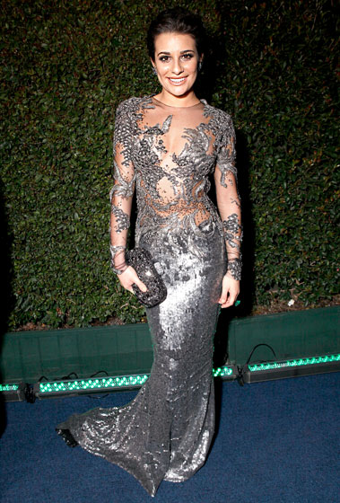 A Glee sztárja is odavan a márkáért, nem a 2012-es Golden Globe volt az első esemény, ahol viselt Marchesa-kreációt. Ez a mélyen dekoltált ezüst ruha igencsak kihívó, ám szinte ráomlik Lea testére.