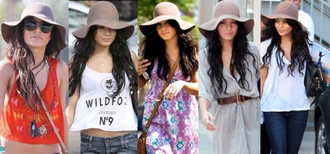Az egykori Disney-sztár, Vanessa Hudgens egyszerűen imádja ezt az egyszerű, széles karimájú bézs kalapot. Már évek óta ragaszkodik ehhez a darabhoz és nagyszerűen párosítja öltözékeihez is, akár egy fesztivál vagy vásárlás alkalmával.