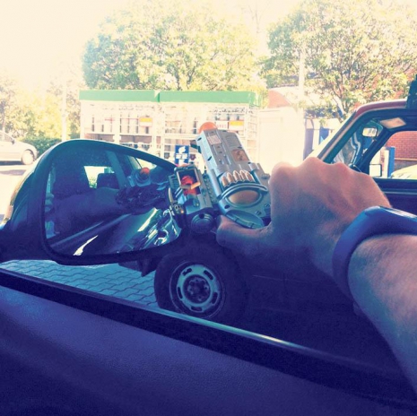 „Elmentünk egy kínai üzletbe, hogy a fellépésekre bevásároljak mindenféle hülyeséget. Rengeteg zenélő, villogó dolgot vettem, többek között egy játékpisztolyt is. Ez egy szürke, neon narancssárga végű fegyver, ami hangosan zenél, és persze elképesztően villog. Mivel nagyon tetszett, így egész úton azzal szórakoztam, hogy minden autót lelőttem. Ezt egyesek komolyan vették, és bejelentették a rendőrségen, hogy lövöldözöm fényes nappal az utcán. Alig fél óra múlva megállított egy rendőrautó. A biztos urak igazoltattak, és elkérték a »veszélyes fegyvert«, hogy alaposan szemügyre vegyék azt" – mondta a Blikknek nevetve Fluor, akit az igazoltatás után végül nem vettek őrizetbe.