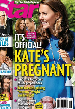 Az alakjáról és karcsúságáról is ismert hercegnőről a Star magazin a napokban jelentetett meg egy cikket, amiben fotókkal bizonygatták, hogy bizony elkezdett nőni a pocakja. Egy júniusi fotón azt vették észre, hogy Kate ruháját úgy alakították ki, hogy abból még legalább három centimétert ki lehessen engedni a derekánál. Ez azért okozott meglepetést és lett gyanús az újságíróknak, mert a hercegnő köztudottan nagyon vékony alkat. Állításaikat igazolva, a magazin szerint egy névtelen forrás a palotából megerősítette, hogy úton van Vilmos herceg gyermeke.