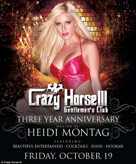 Heidi Montag – miután fél vagyonát plasztikai műtétekre költötte – új kereseti lehetőség után nézett. Újabban Las Vegasban próbál szerencsét: egy sztriptízbárban vetkőzik.