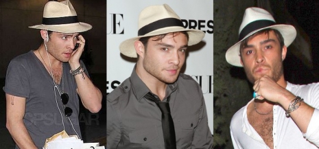 A Gossip Girl rosszfiúját gyakran kapják lencsevégre különböző fazonú fejfedőkben. Ed Westwick talán legkedveltebb darabja ez a világos kalap, melyben jelent már meg hivatalos sajtóeseményeken, repülőtéren és már az utcán sétálgatva is láthattuk favoritjával a fején.
