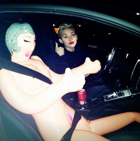 Újabb pajzán fotó került elő Miley Cyrusról, akit erotikus játékkal leptek meg szerettei.