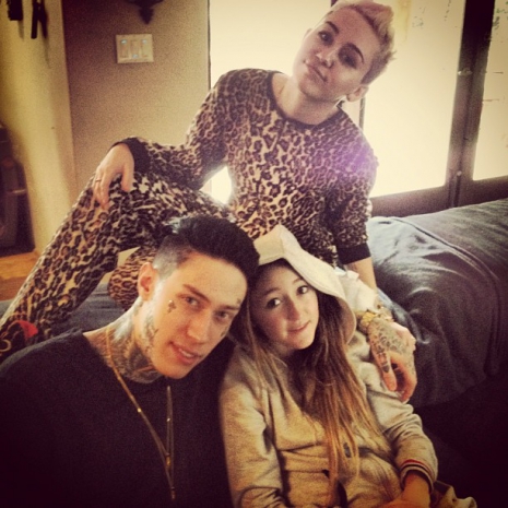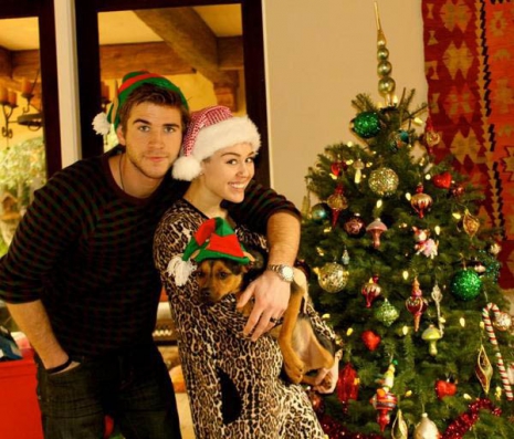 Miley Cyrus vőlegényével, Liam Hemsworth-szel, három testvérével Noah-val, Trace-szel, és Braisonnal, nagymamájával, Lorettával, szüleivel, Tish-el és Billy Ray-el, és kutyáival ünnepelt, amiről vagy egy tucat képet ki is posztoltak a közösségi portálokra. Már a karácsony előtti napokban is előszeretettel idézett kedvenc karácsonyi dalából, a Let It Snow-ból, kutyáiról is töltötte fel az aranyosabbnál aranyosabb képeket, sőt egyik ajándékával, egy szexbabával is eldicsekedett. Azonban az ünnepnapon kicsit visszavett és egy leopárdmintás kezeslábasban tengette idejét hol Liam, hol Noah vagy Trace, hol pedig kutyái oldalán pózolva a fényképezőgépnek.